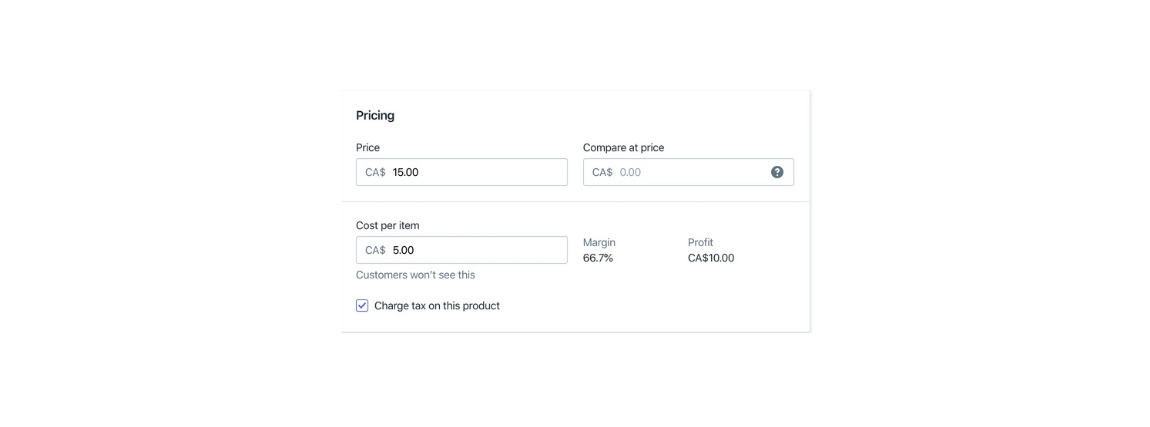 A “Cost per item” szintén opcionális, használhatod a haszon megfigyeléséhez az egyes termékek esetében. (Ezt a vásárlók nem fogják látni).